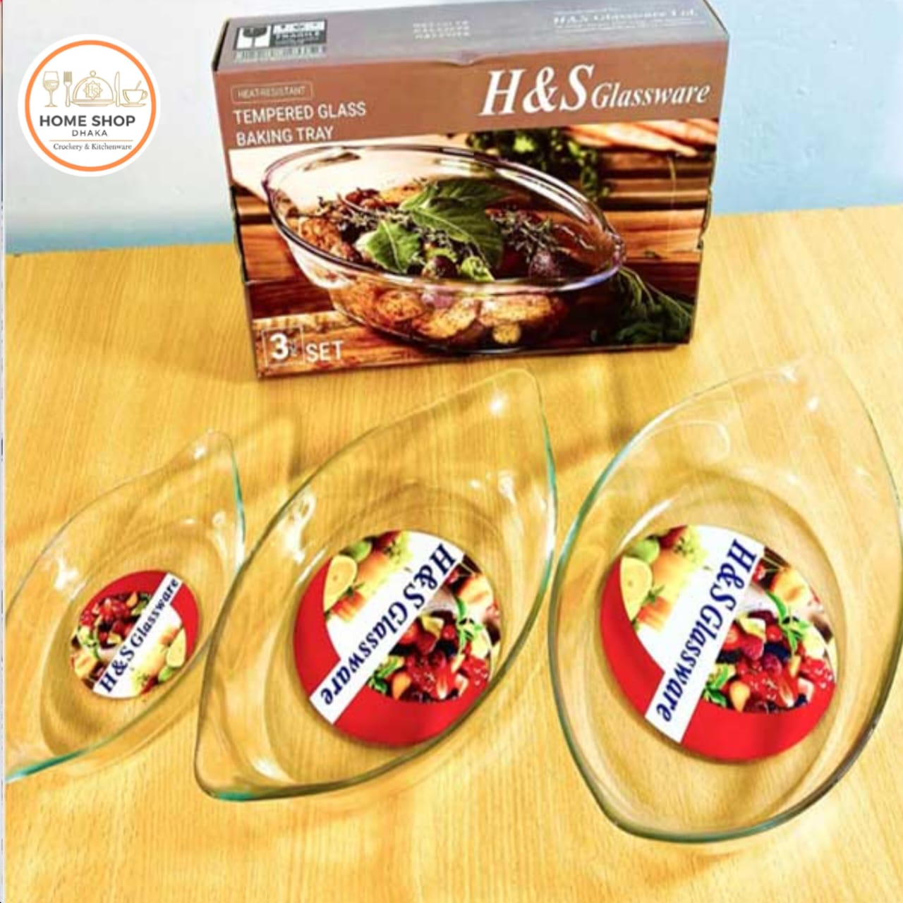 3pcs glass tempered baking / food serving dish set