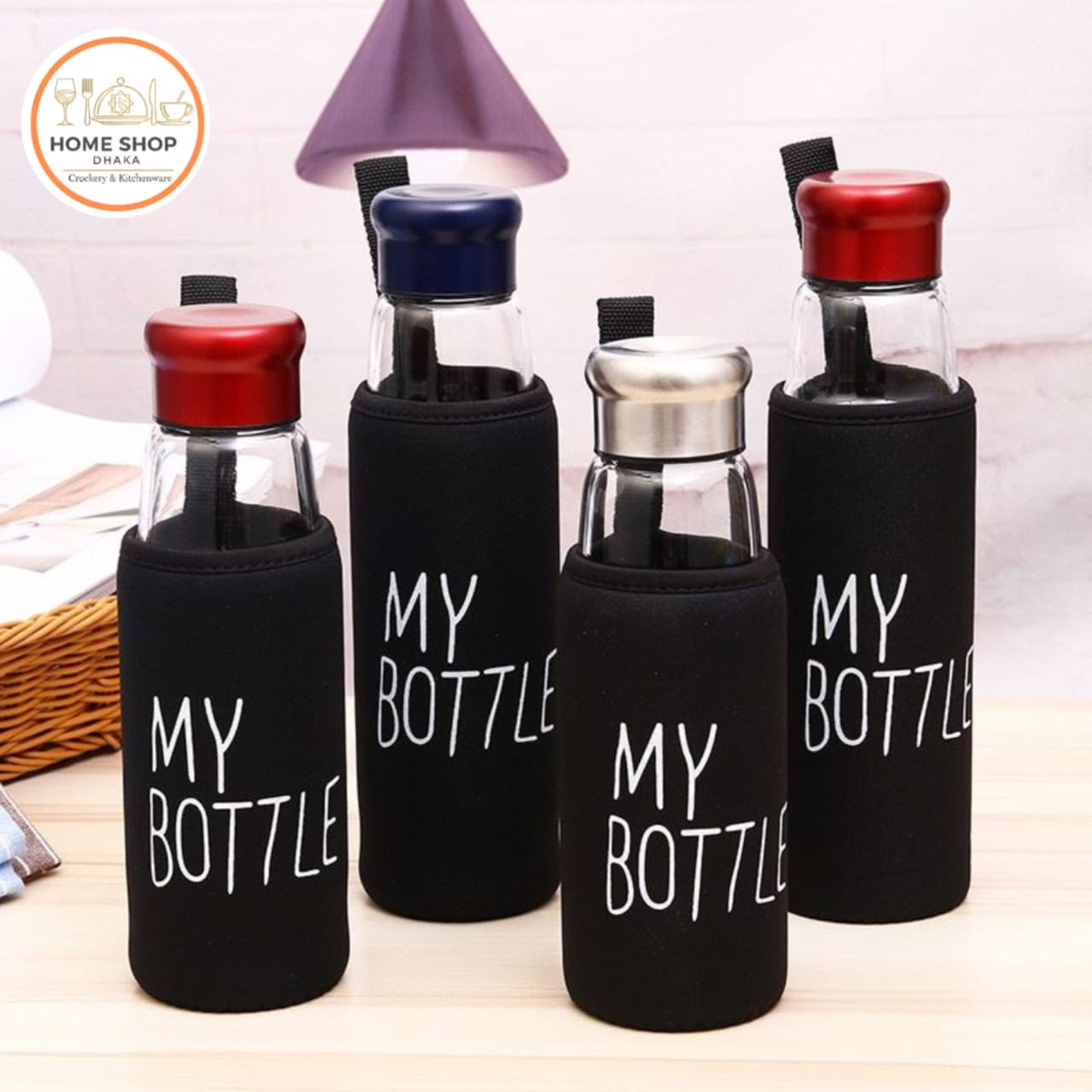 Glass Water Bottle Stainless Steel Filter Screw Cap Lid Sport Style